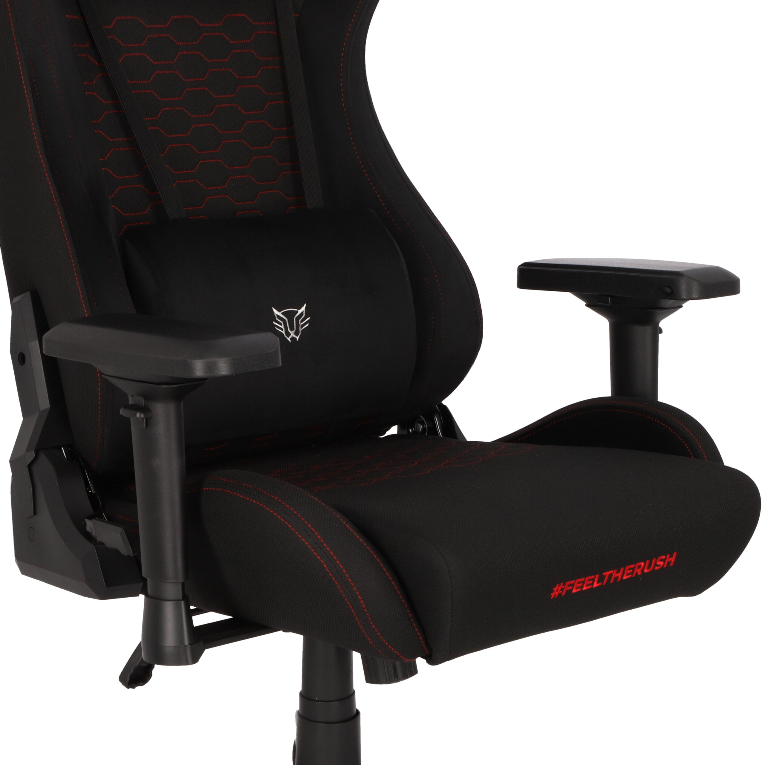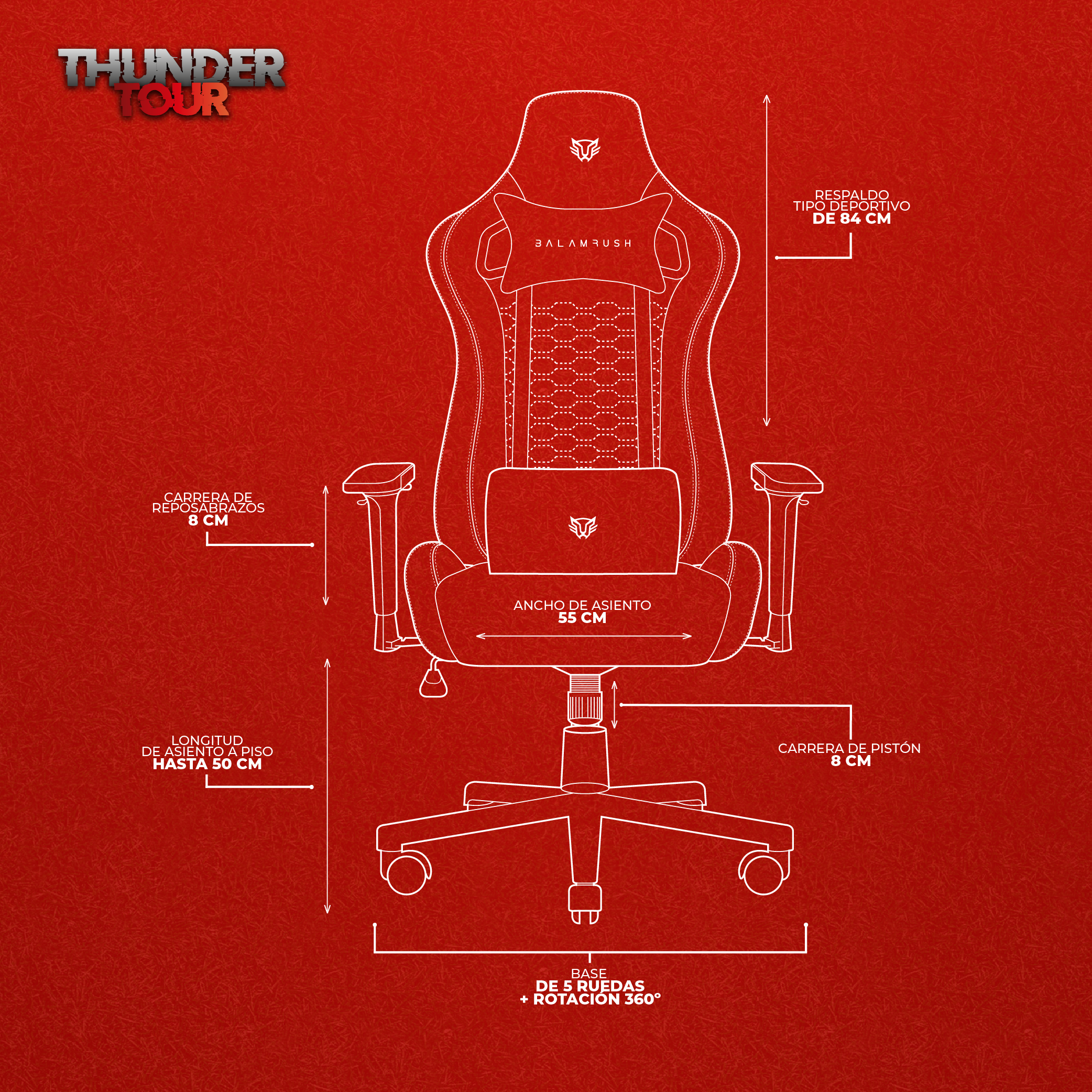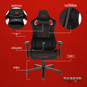 Silla Ergonomica para Gamer Thunder Tour BR Edition XL Plus Tela y Alcantara Reclinable Base de Metal Soporta hasta 150 Kgs Ajuste 4D Cojines de Memory Negro-Rojo
